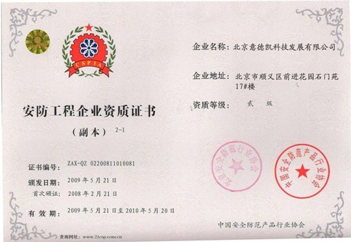 科雷通弱电工程有限公司安防工程资质企业证书