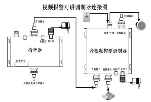 ①将音频拾音器安装在电梯轿厢控制板内,音频输出连接到调制器上。通过拾音器上的音量调节器可调节音量。拾音头可以选择内置麦克或外置麦克。