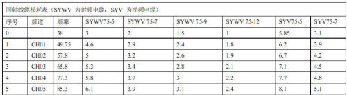 国标标准的SYWV75和SYV75 电缆每百米衰减表