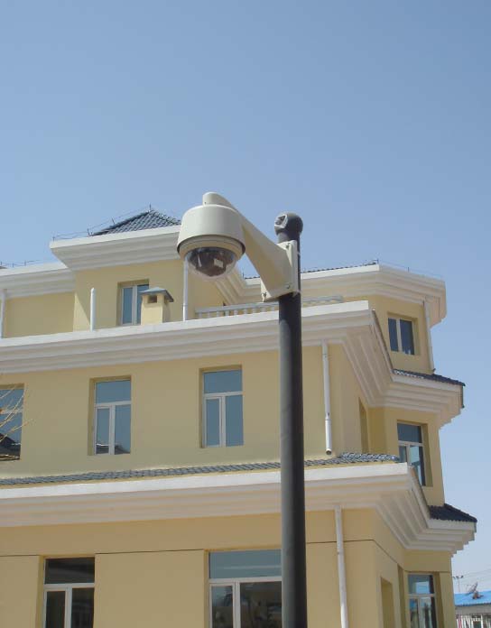 在一些档次比较高的居民小区和花园别墅区,一般都要求安装闭路电视监控系统。监控点可在大门口、停车场、主要街道等,在保安的控制室内,可以监视到整个居民小区和别墅区。如发现有可疑人员出现,可用记录下来,并采取相应的防范措施。如在别墅区周围安装防入侵型探测器,一旦有不法人员入侵,将会立即发生报警,在控制室内可将画面直接调到主监视器上,进行实时录像,保安人员可立即赶赴案发现场。